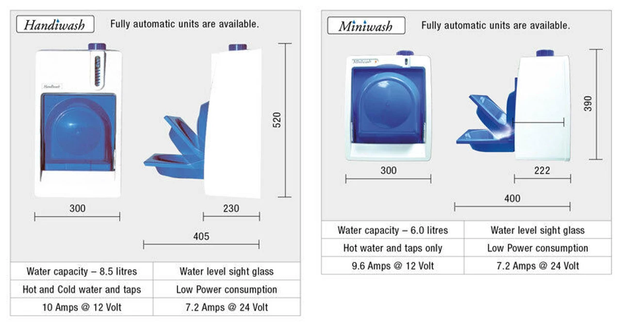 The Eberspacher Miniwash and Handiwash are a perfect internal/external solutions to handwashing without the need of a waterpump, seperate water container or mains supply.