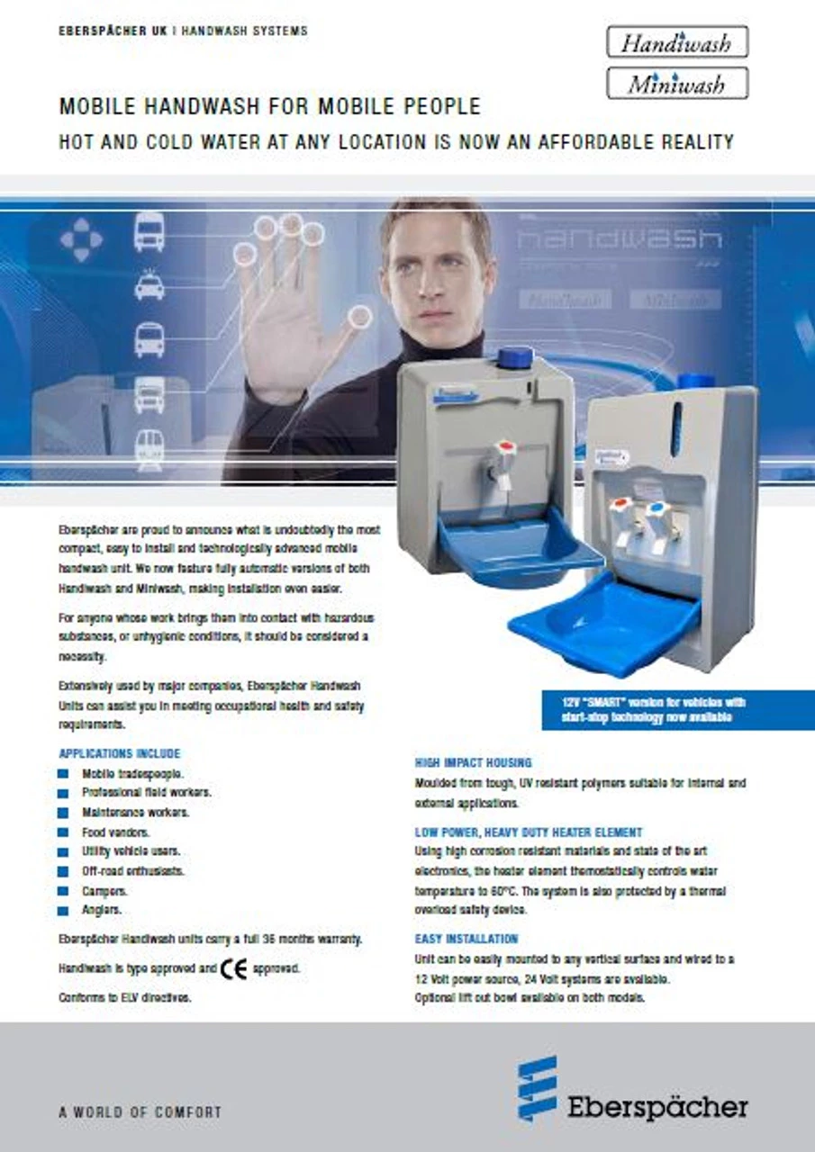 Eberspacher Handiwash Specifications and Features.