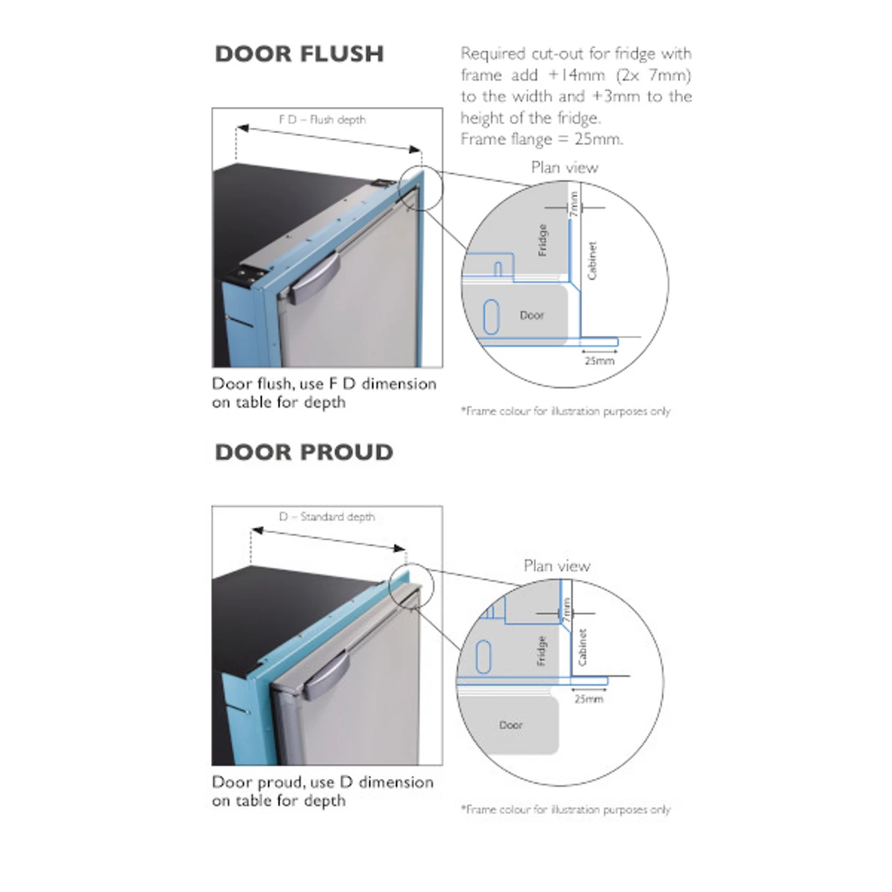 Available in two different colours (black or silver) these fitting frames for Vitrifrigo Airlock Compressor Fridges can be used for a standard or flush finish. A selection of frames suitable for use with the C39i, C42L, C51i, C60i and C62i: please use the drop down menu at the top of the page to select your preference of frame size and colour prior to checkout.
