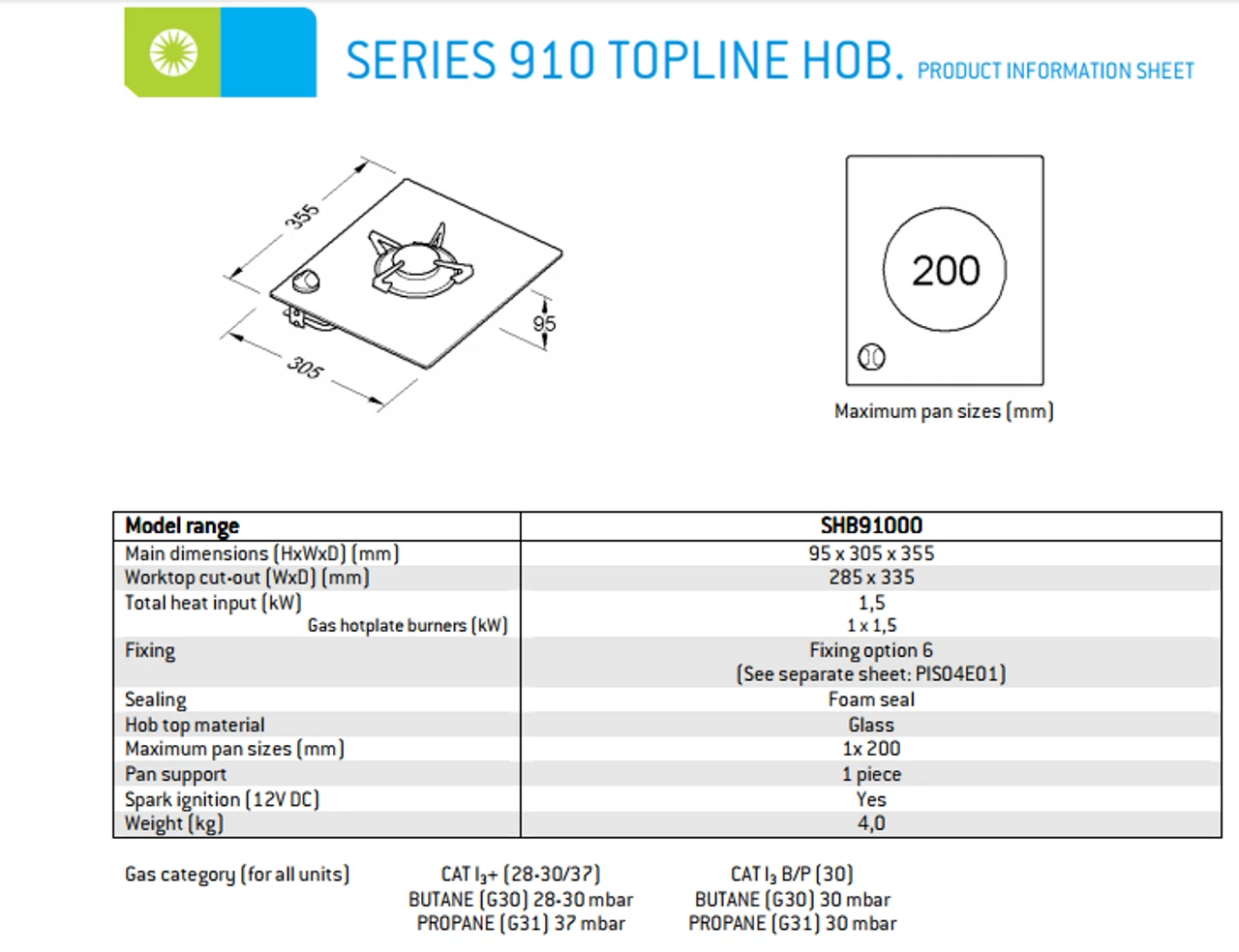 The Thetford Topline 910 is a streamlined, stylish, built in glass hob. This powerful 1-burner hob is easy to clean, and fits well in the modern galley kitchens in campervan, motorhome and boat.
