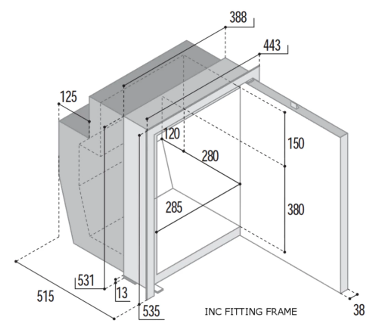 | Vitrifrigo C51i Compressor fridge | 532mm | 380mm | 459mm (Flush 501mm) |